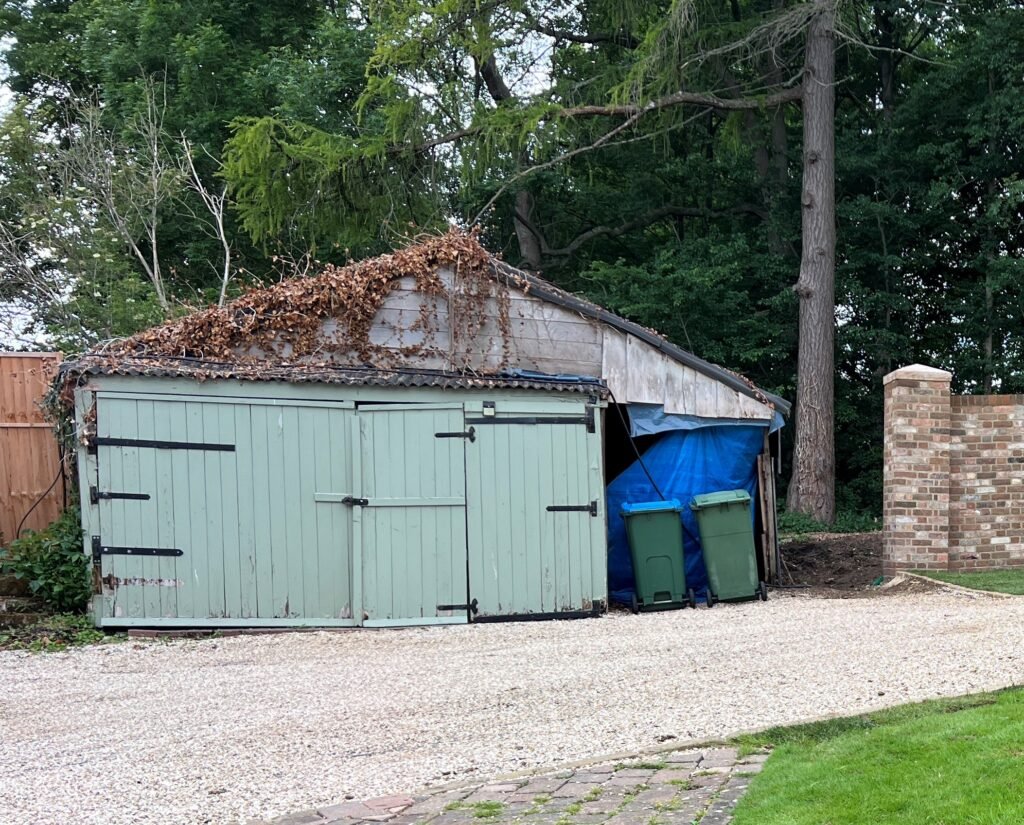 This project focused on the full replacement of an ageing double garage situated near a historic site in Oxfordshire. The existing structure had fallen into disrepair, and a new, practical double garage was designed to occupy the same footprint while retaining a similar scale and form.
